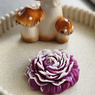 - Bougie décorative artisanale à la pivoine. Fabriquée à la main en France avec cire d’olive et 10 % de parfum de Grasse, elle diffuse un parfum délicat tout en apportant charme et élégance à votre intérieur. Idéale également à offrir, seule ou pour un événement.