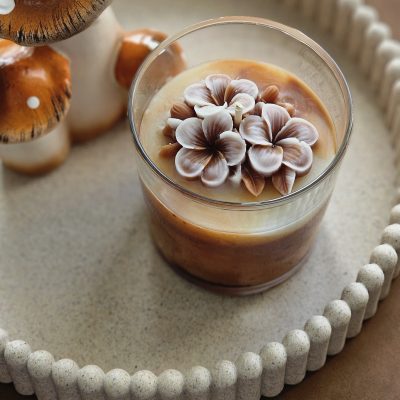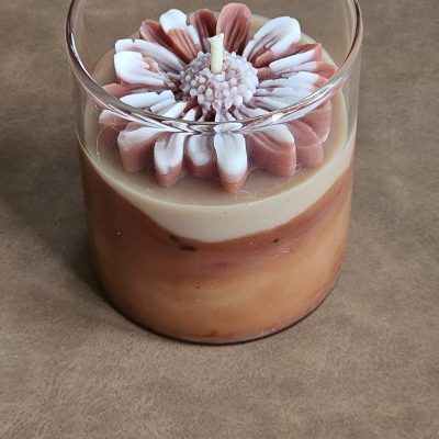 - Bougie artisanale 215g en cire naturelle, parfum Vanille des Îles. 🌼 Son parfum gourmand et sucré, associé à une délicate fleur en cire, apporte douceur et élégance à votre intérieur.
