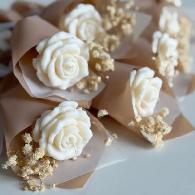 - Bougie rose artisanale 60 g en cône kraft, décorée de fleurs séchées 🌹. Parfum délicat, décoratif et idéal comme cadeau ou objet déco.