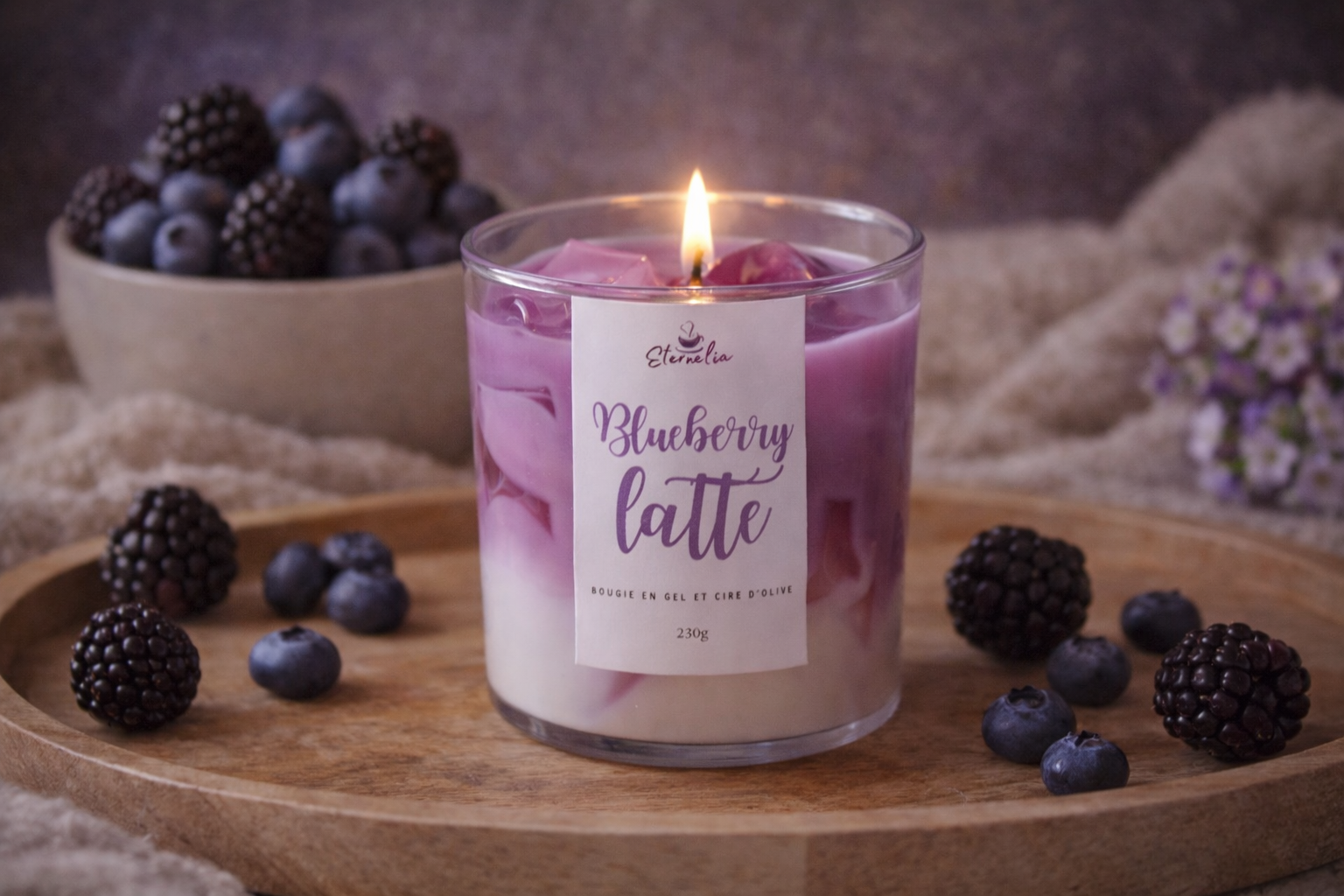 Découvrez notre bougie blueberry Latte, une création unique mêlant esthétisme et douceur olfactive.