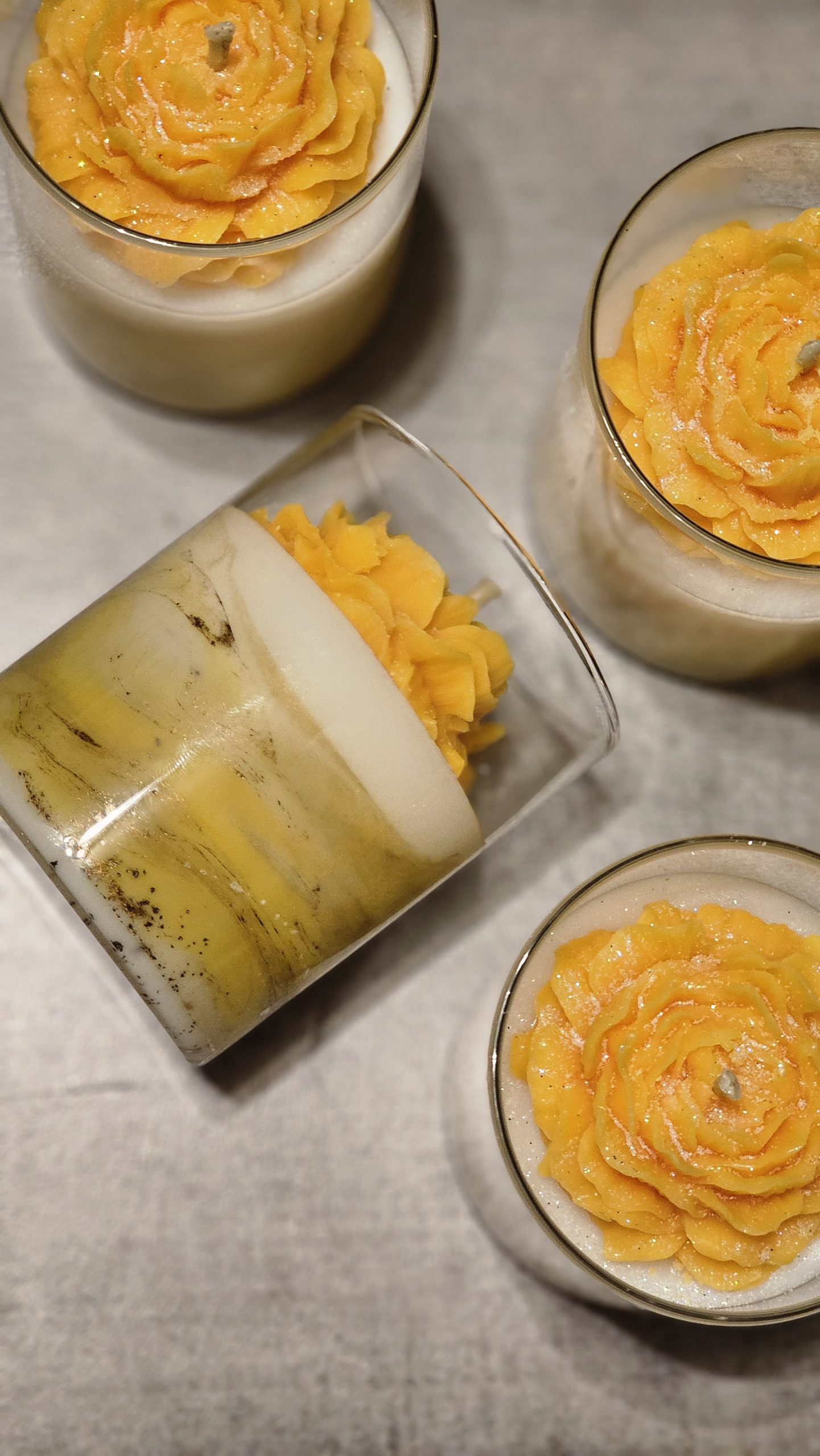 Surmontée d’une fleur en cire raffinée, chaque bougie devient une véritable pièce décorative unique. 🌼