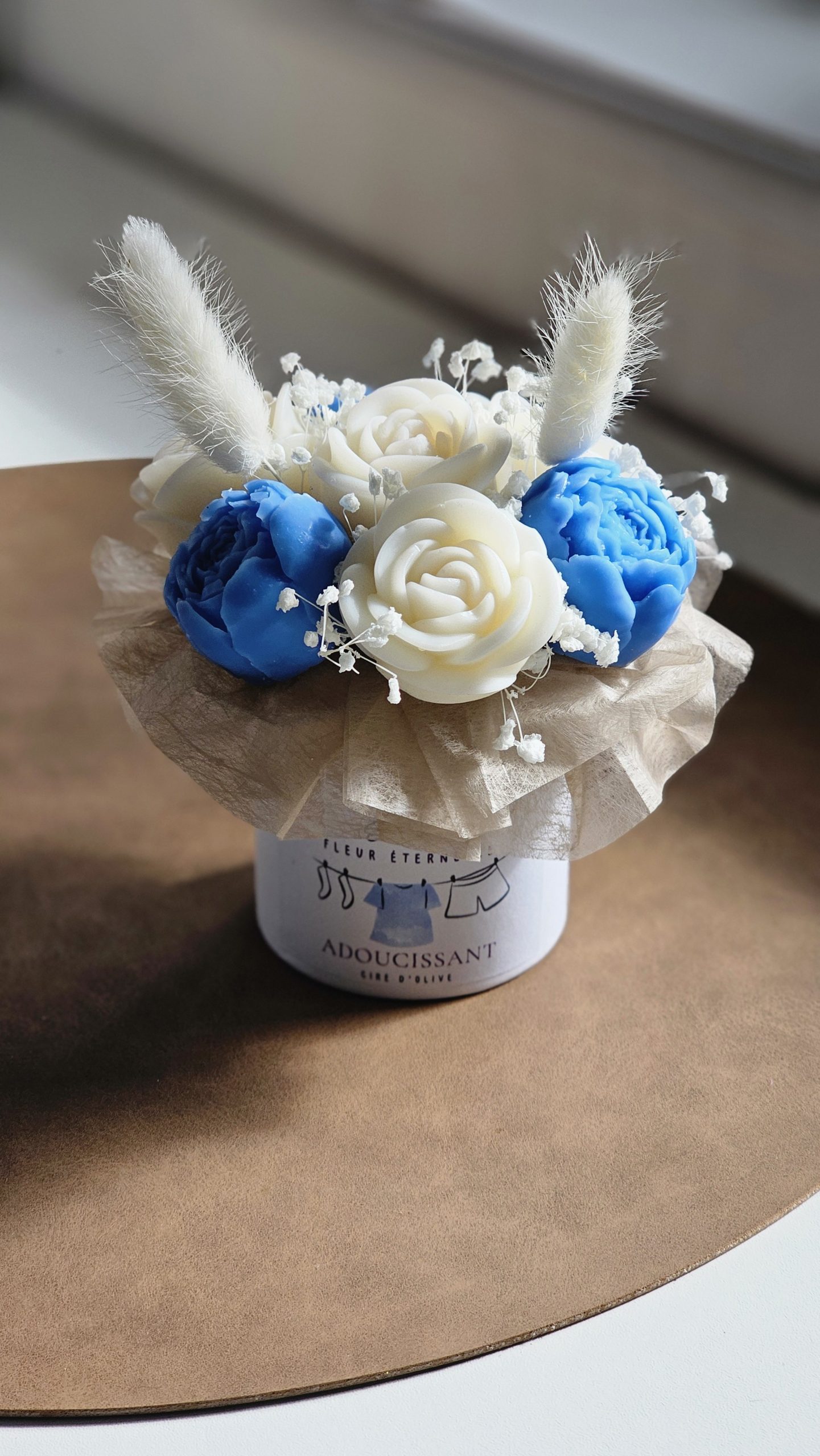 Un bouquet raffiné de 7 fondants parfumés en forme de pivoines et de roses 🌸 (20 g chacun), en cire d’olive 100% végétale 🌿.
