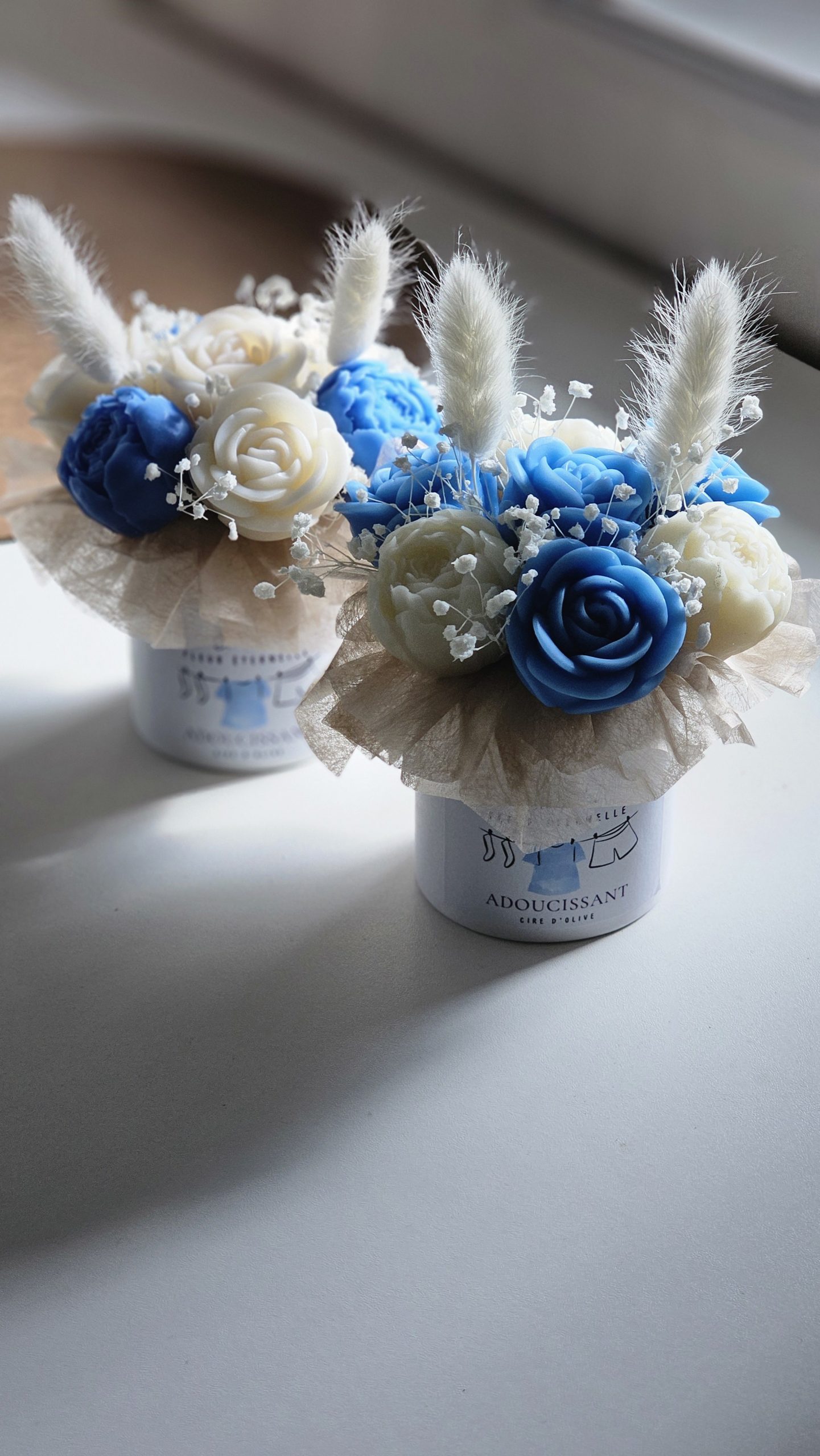 Un bouquet raffiné de 7 fondants parfumés en forme de pivoines et de roses 🌸 (20 g chacun), en cire d’olive 100% végétale 🌿.