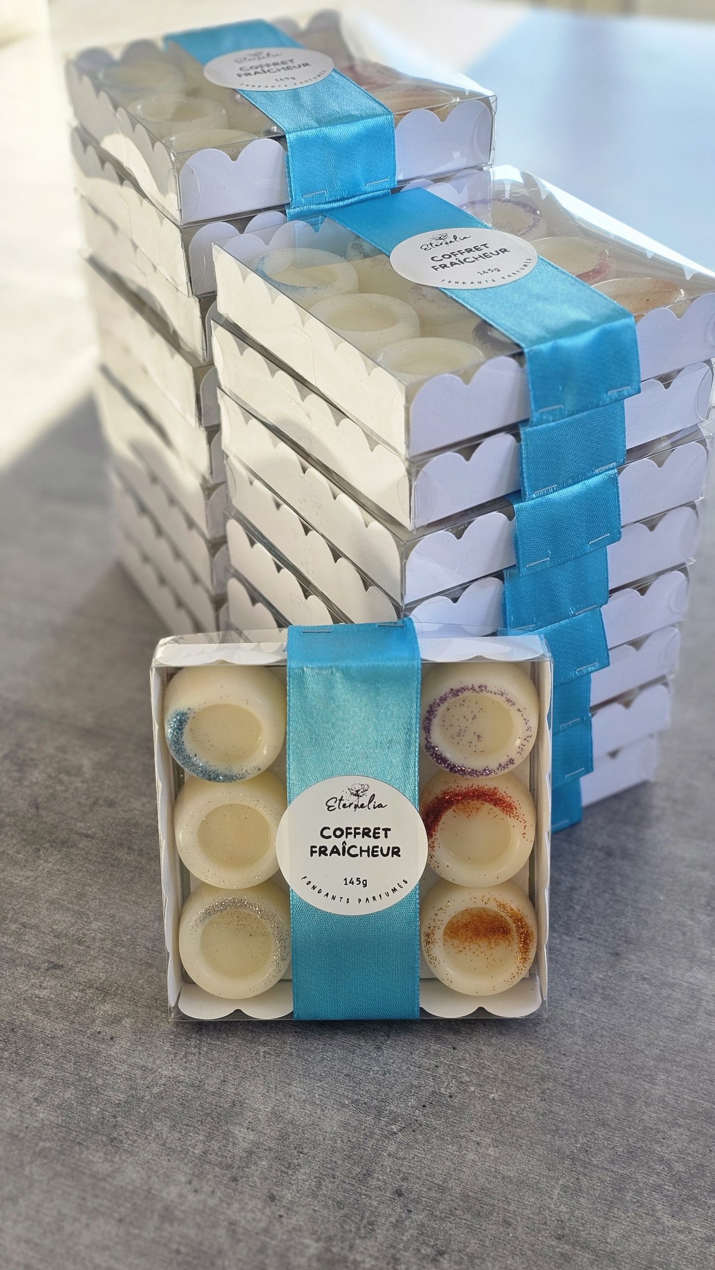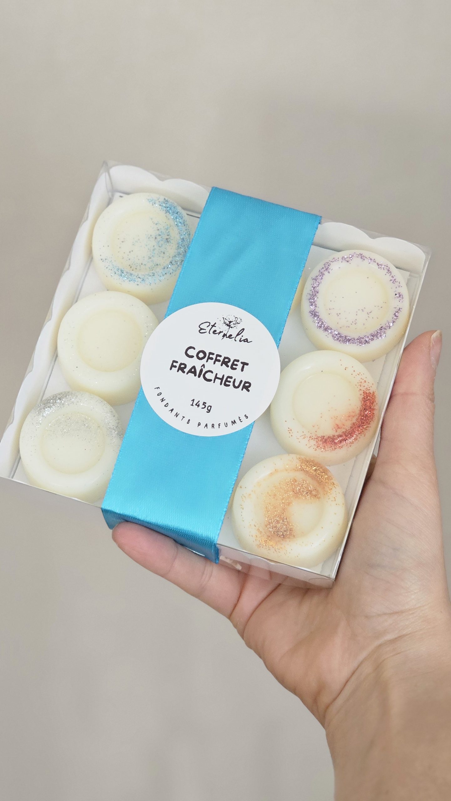 ✨ Découvrez notre coffret fraîcheur composé de 9 fondants parfumés coulés à la main. Réalisés en cire végétale d’olive, ils diffusent délicatement leur parfum dans votre intérieur pour une ambiance douce et réconfortante.